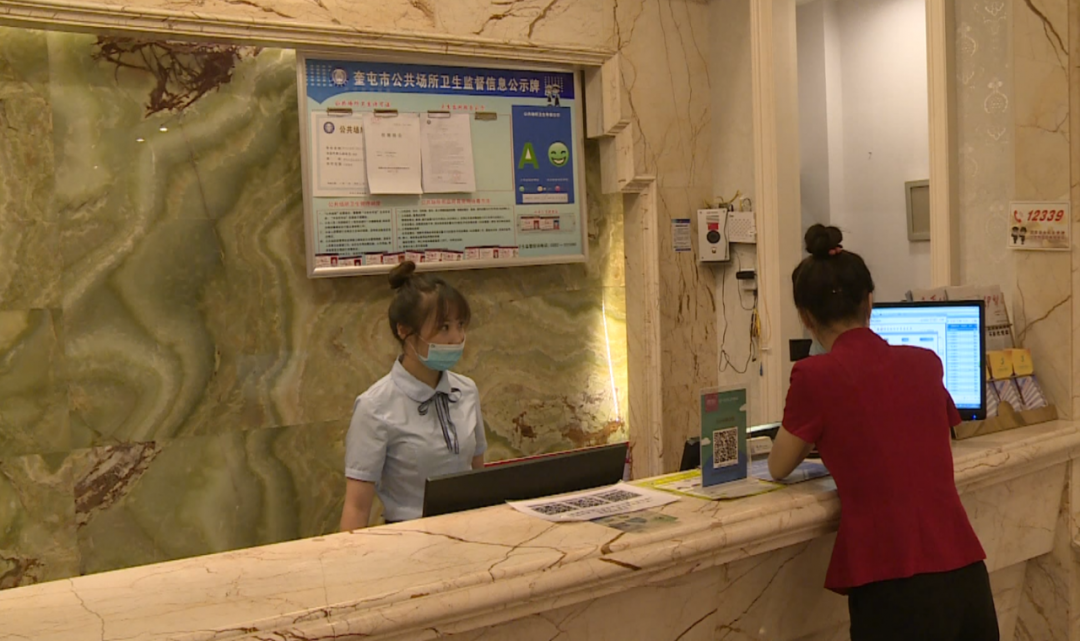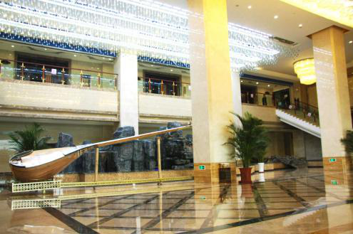 酒店大堂设在酒店一楼,大堂采用三层挑高的建筑设计,大理石壁挂的墙面装修使整个酒店大堂显得格外高端大气。大堂服务功能有:酒店前台接待、商务中心、宴会预定、礼品商店等功能。
